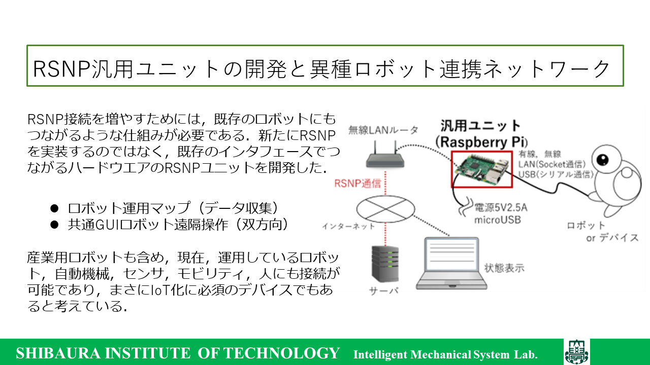 ロボットサービスのための共通ネットワークプロトコル(RSNP)を活用するメリットについて紹介する。
