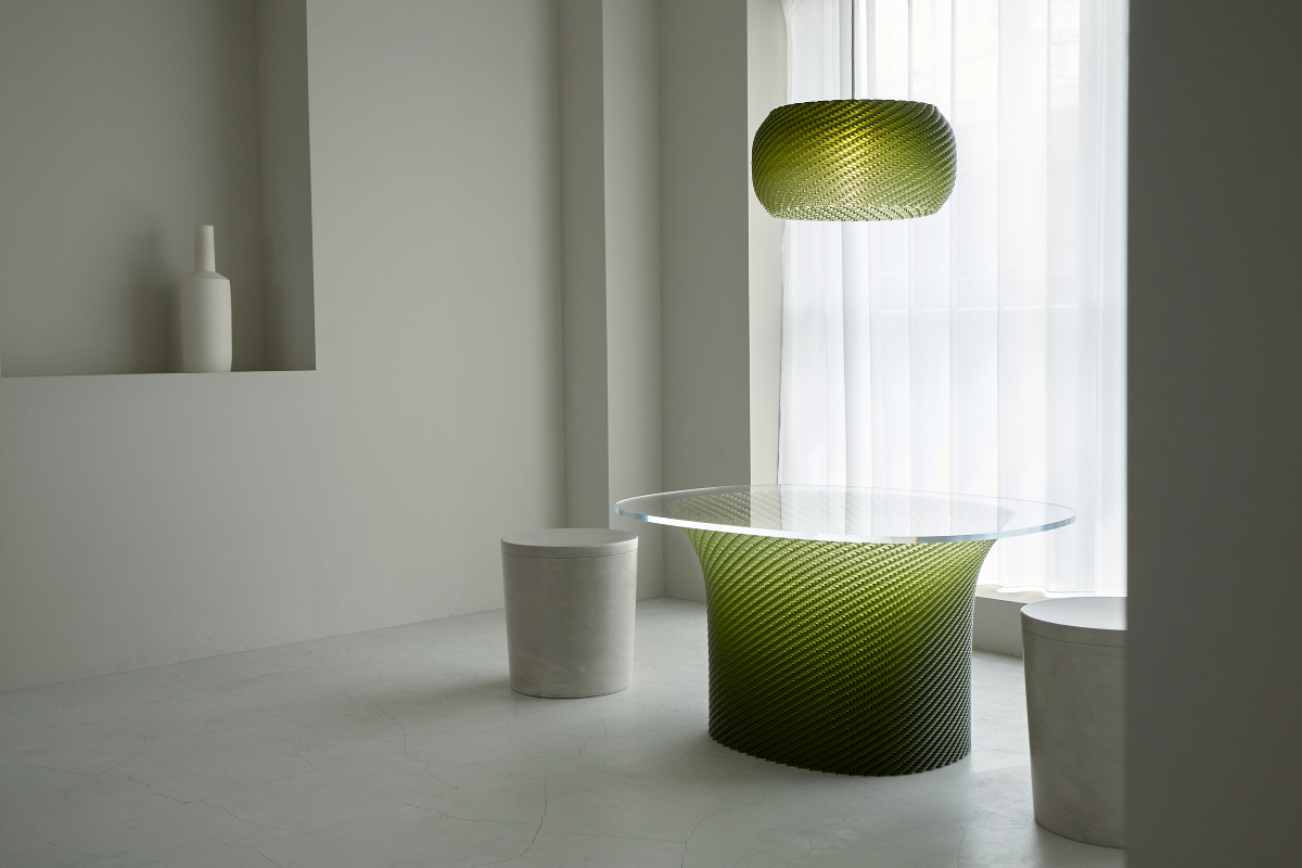 代表的なプロダクトには、テーブルやイス、ランプシェードなどがあり、ミラノサローネの展示会内で開催された35歳以下のデザイナーを対象としたサテリテアワードでは、グランプリを受賞しました。さらに、現地でのご縁をきっかけに、大阪・関西万博のイタリア館での展示も実現しました。