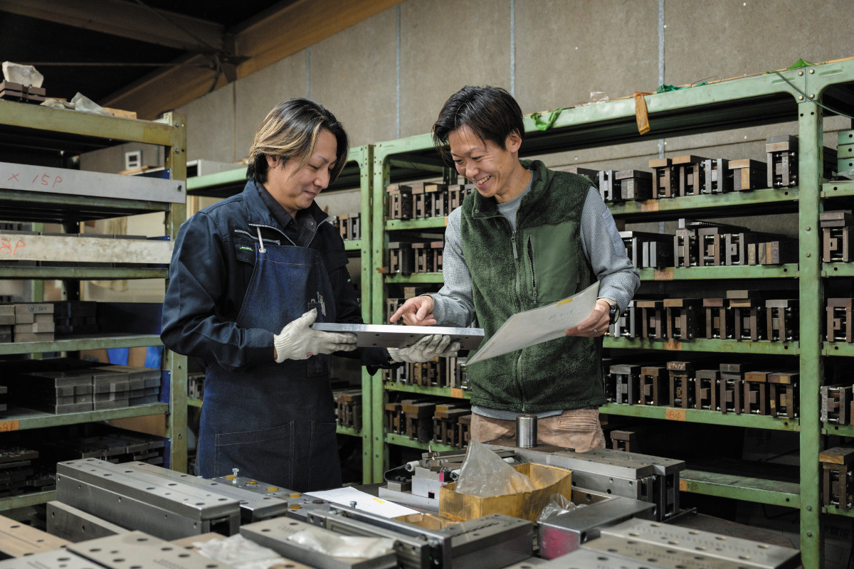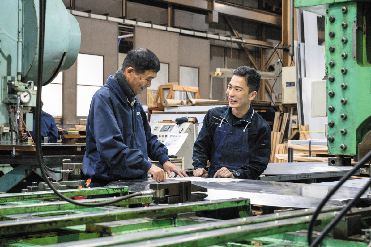 徹底した品質管理体制を整え、曲げ・溶接・表面処理なども近隣の協力会社と連携して、ワンストップサービスを実現しています。また、技術・技能継承にも力を入れ、一人1台の機械を担当する形で専門性を高めつつ、多能工化を目指しています。社員同士が意見交換をしやすい職場環境が若手社員を育て、会社の成長につなげています。